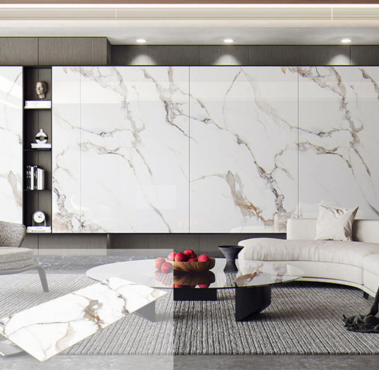 Premium stone-finish tiles designed for modern interiors and furniture applications.